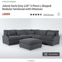 Luxury Dark Grey 5-Piece Modular Sectional w/ Ottoman – Like New, Reclining & USB Charging!$2,200Los Angeles, CA