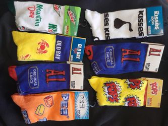 Novelty Socks For Men Sizes 6-12 Mnt Dew,Kisses,Old Bay, POPS, Pez, A1$6Denver, CO