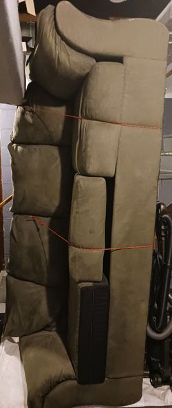 OLIVE GREEN COUCH GOOD CONDITION NEEDS CLEANED CUSHION ACCIDENTALLY TURNED BACKWARDS IN PIC $100Akron, OH