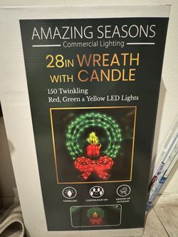28in Pre-lit Christmas Wreath with Candle & Bow, 150 Green & Red & Yellow Twinkling LED Lights$30Glendora, CA