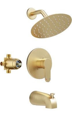 Tub Shower Faucet, Brushed Gold Shower Faucet Set with 6-Inch All-Metal Rainfall Showerhead and Bathtub Spout, Single-Handle Tub Shower-Trim Kit Inclu$70Houston, TX