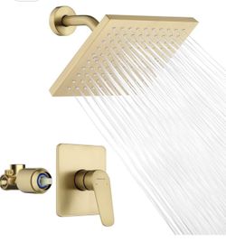 Gold Shower Head and Valve Set Single Spray Premium Wall Mount 8 Inch Rainfall Squre 1 Handle Shower Faucet with Rough-in Valves and Knob Kit for Bath$65Houston, TX