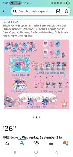 Boys Girls Stitch Angel Party Decorations