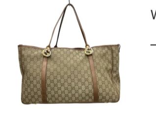 💯Authentic GUCCI Brown GG Canvas and Gold Leather Tote Hand Bag Purse $300Orange, CA