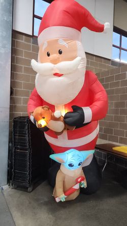 Inflatable 12 ft santa with lights and candy cane grogu. $100Poulsbo, WA