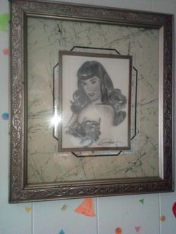 3 Original Paintings One Pencil Sketch Vintage Pin Up Girls Beettir Page Merlin Monroe In Ogrinal Frames By the Artist $400Covina, CA