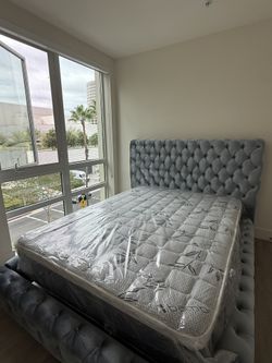 Gray EKing Bedframe W/Mattress $499Costa Mesa, CA