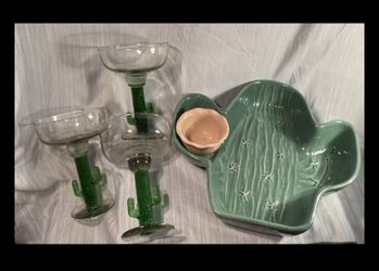 Cactus Chip & Dip Platter W/3 Cactus Margarita Glasses $25Pasadena, TX