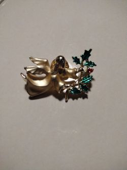 Vtg Gold Tone Angel Holding Holly$35Victorville, CA