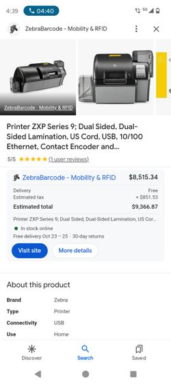 Zebra Zxp Series 9 ID DUAL SIDED PRINTER$3,400Schaumburg, IL
