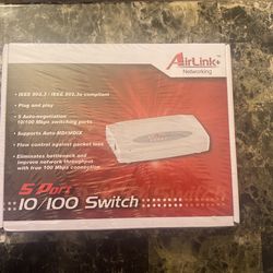 AirLink Networking 5 PORT 10/100 Switch 5 Port Dual Speed Ethernet Ports NEW$15Los Angeles, CA
