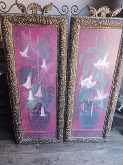 Muted Goth Paintings Trumpet Lillies Deep Red Blood Walls Early Century Romance$95Hacienda Heights, CA