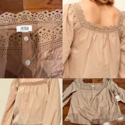 a.n.a NWT BOHO square neckline,eyelet lace details button placket Peasant top L$19Staten Island, NY