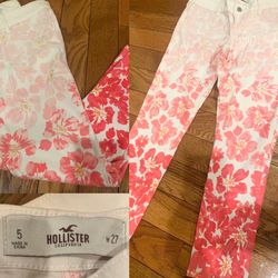 authentic retro Hollister white/hibiscus floral print cropped skinny jeans 5$18Staten Island, NY