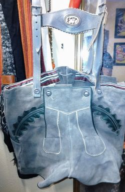LaughtHoden Made In Germany Cultural Real Soft Blue Suede Shorts With Suspenders Octoberfest 1960s Vintage Shorts$100Las Vegas, NV