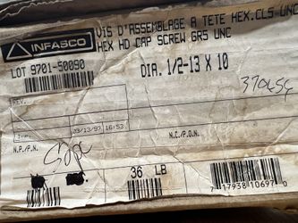 INFASCO Hex Head Cap Screws – Grade 5 UNC (1/2”-13 x 10”) – Box of 50 $89Laurens, SC