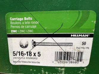 Carriage Bolts 5/16"-18 x 5" $17Laurens, SC
