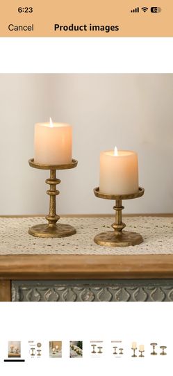 NUPTIO Gold Candle Holders for Pillar: Antique Brass Cast Iron Candleholder for 3 Inch Pillars -Heavy Metal Candle Stand for Christmas Party Table Dec$20Hesperia, CA