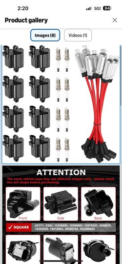 8Pcs UF271 Square Ignition Coils with 41-962 Platinum Spark Plugs & 748UU 8mm Spark Plug Wires Set Compatible with Chevy Silverado Suburba Tahoe, Cadi$90Hesperia, CA