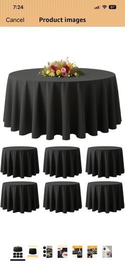 6 Pack 120" Black Round Tablecloths | Fits 48"-78" Tables | Polyester Washable Fabric for Wedding, Party, Banquet, Restaurant$35Hesperia, CA