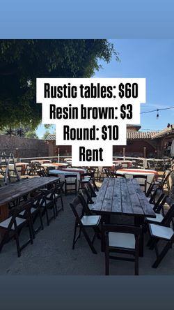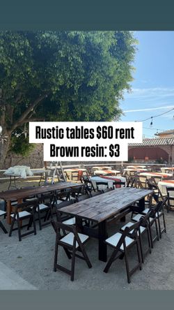 Rustic farm tables and brown resin chairs$60Paramount, CA