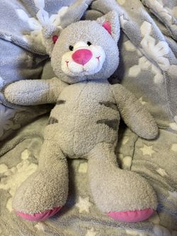 a retired Build-A-Bear Workshop Snazzy Kitty plush toy, a gray striped cat with pink accents. $20San Diego, CA