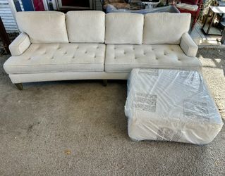 Haverty’s Gianna 103” Bermuda Neutral Color Conversation Sofa With (New) West Elm Ottoman Chaise$480Fort Worth, TX