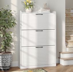 Maupvit Shoe Storage Cabinet with 3 Flip Louvered Doors, Freestanding Organizer with Metal Hinges, Shoe Cabinet for Entryway, Narrow Shoe Rack Cabinet$120Rancho Cucamonga, CA