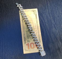 Men's 8 Inch White Gold Filled Cuban Prong Bracelet 12MM $25Grapeview, WA