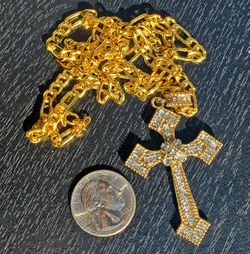 Gold Cross Pendant And 24 Inch Figaro Chain Necklace 5MM $25Grapeview, WA