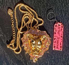 Betsey Johnson Crystal Gold Lion Head Pendant 27 Inch Chain Necklace $25Grapeview, WA