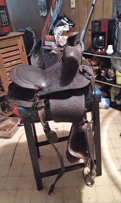Vtg Horse Saddle, Western Round Knob Pleasure Horse Riding Ornate Engraving$100Elsberry, MO