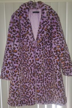 Long Purple/Pink Leopard Faux Fur Jacket Woman's XL$200Fullerton, CA