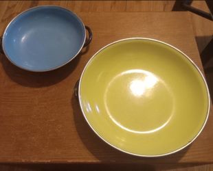 Vintage Double Handled Enamelware Sauté Pans Made In Yugoslavia 20 Yellow, 15 Blue$1Kannapolis, NC