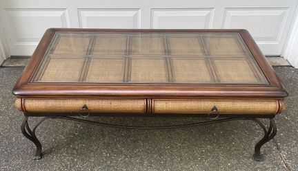 Vintage Hardwood & Rattan Coffee Table w/ Glass Top + Storage Drawers$200Redmond, WA