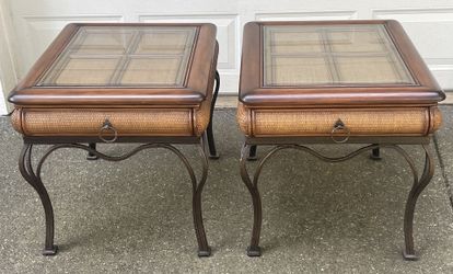 Pair of Vintage Hardwood & Rattan Side Tables w/ Glass Tops + Drawers$200Redmond, WA