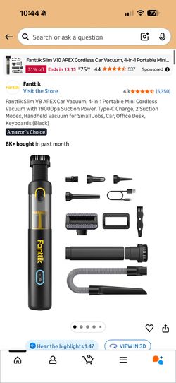 Fanttik Slim V8 APEX Car Vacuum$60Los Angeles, CA