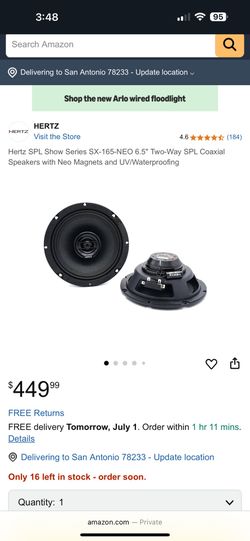 Hertz SPL Show Series SX-165-NEO 6.5" Two-Way SPL Coaxial Speakers with Neo Magnets and UV/Waterproo$350San Antonio, TX