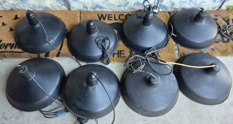 9 used black Aluminium pendant lights 16"