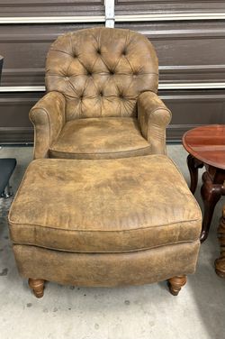 Brown faux leather Club Chair with Ottoman from Truscott furniture$225Las Vegas, NV