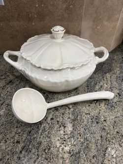 Vintage Beige Ceramic Soup Tureen With Ladle. YOZIE Mold $50Las Vegas, NV