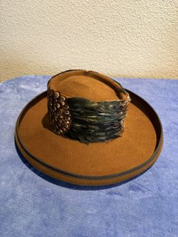 Vintage Women’s Brown 100 % Wool Fedora Style Hat Pheasant And Peacock Feather New York Paris Mr John$50Las Vegas, NV