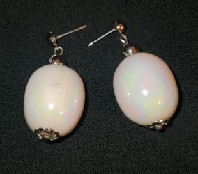 Vintage White Satin Ovel Glass Like Earrings $10Drexel Hill, PA