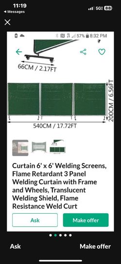 Curtain 6' x 6' Welding Screens, Flame Retardant 3 Panel Weld$100Victorville, CA