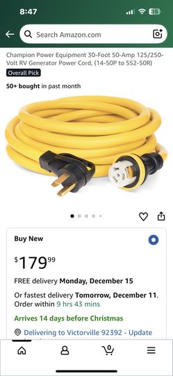 Champion 30-Foot 50-Amp 125/250-Volt Home OR RV Generator Power Cord, ($115Victorville, CA