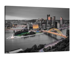 Black And White Pittsburgh Skyline Canvas Wall Art Cityscape Bridge River 36x24$44Los Angeles, CA
