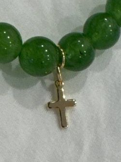 Green Quartz beaded 7” UNISEX Bracelet with 18K Plated Cross$5Westminster, CA