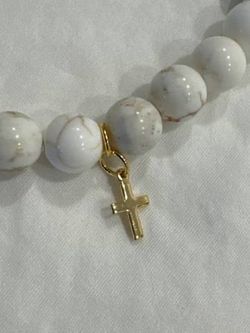 White Quartz 7” UNISEX Bracelet with 18K Gold Plated Cross - Made In USA$5Westminster, CA