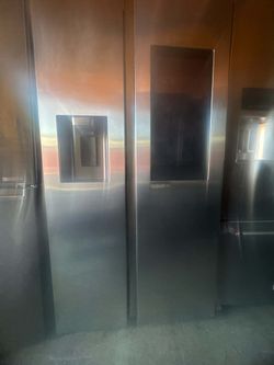 SAMSUNG FAMILY HUB DENTED STAINLESS STEEL SIDE BY SIDE REFRIGERATOR/ BUILT-IN TABLET $650Yorba Linda, CA