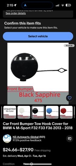 BMW 428i M Sport Tow Hook Cover $50Paramount, CA